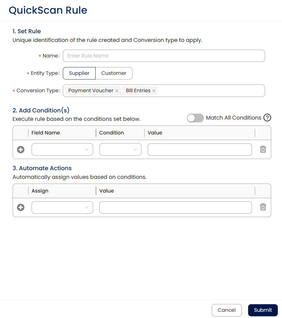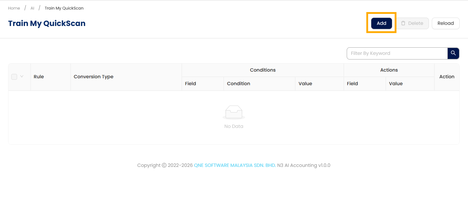 Train my QuickScan is a N3 AI Accounting feature to automate the keywords detected during document conversion in QuickScan. Creating rules and criteria will ensure that data extraction aligns precisely with a business's document processing requirements