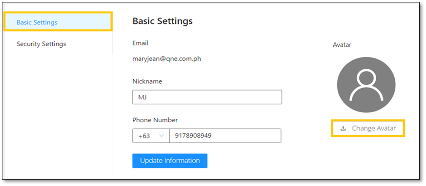 Every user in the system can upload their avatar in Account Settings, and this avatar serves as their account's display picture.