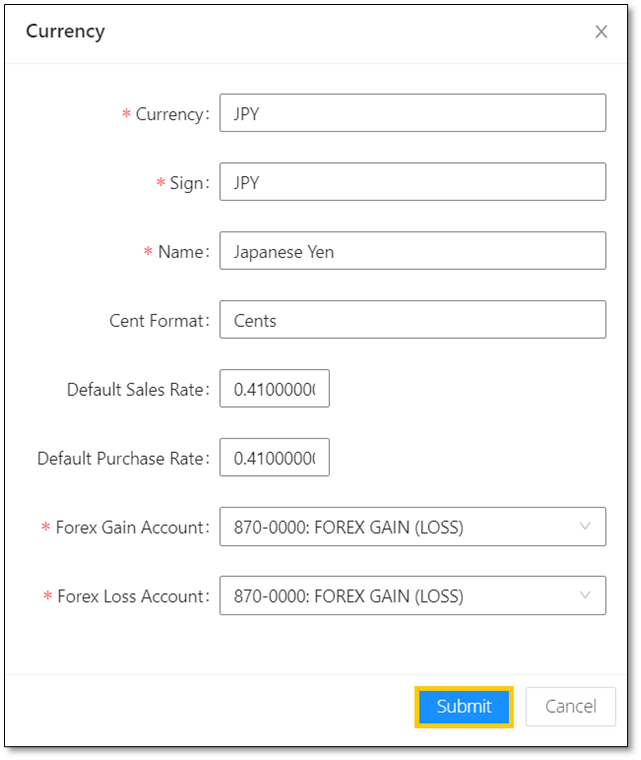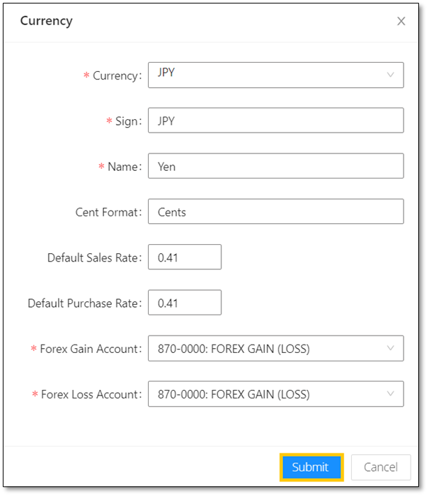 Forex Gain & Loss Account: The system automatically computes for Gain or Loss and have it posted the set accounts.