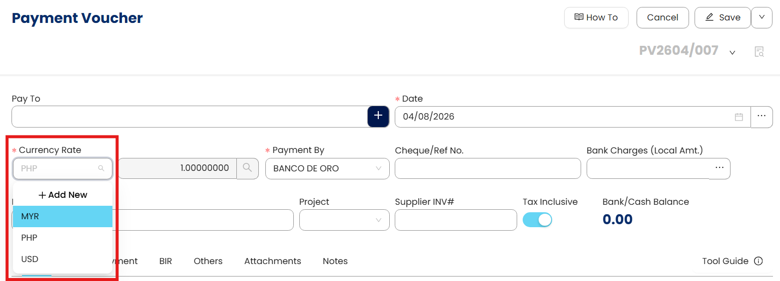 N3 AI Accounting allows users to maintain currency other than PHP. These currencies can be assigned to a customer or a supplier and used in transactions by establishing an exchange rate. The transaction will then be automatically converted and posted in local currency by the system.