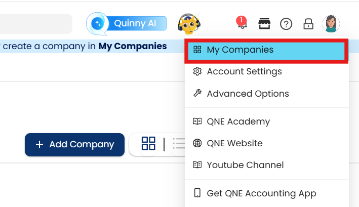 1. In Banner, click the display name then open My Companies