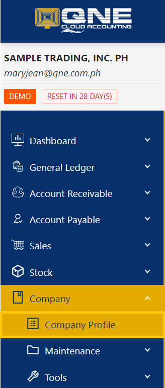 1. In the Navigation pane, go to Company > Company Profile