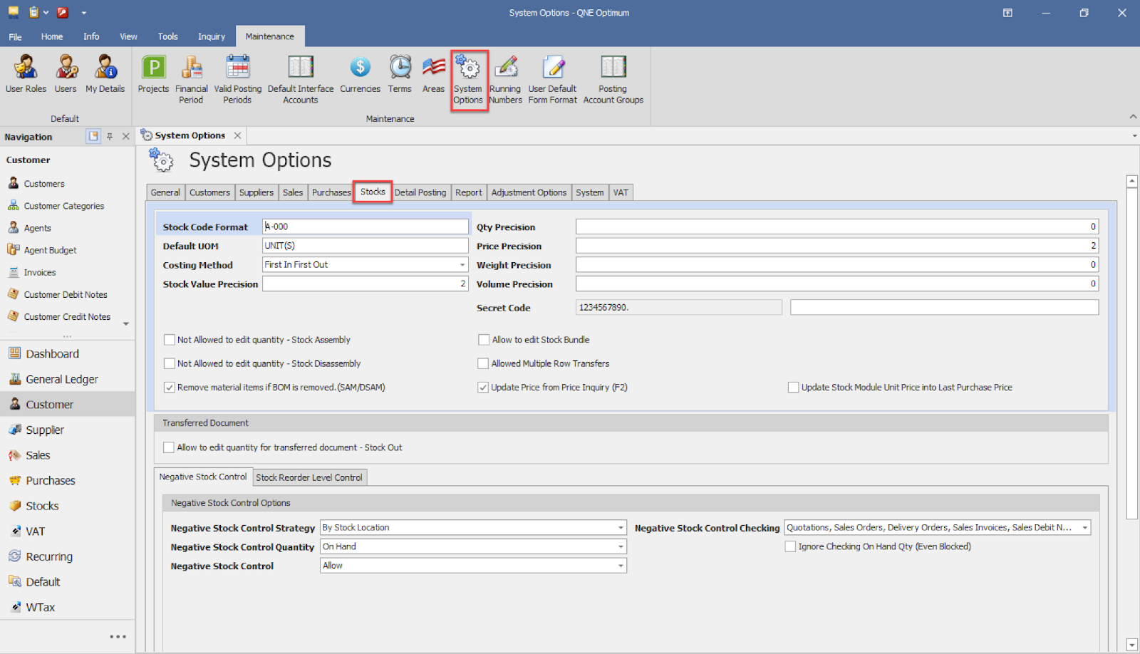 Navigate to Maintenance > System Options > Stock Tabs in the system.
