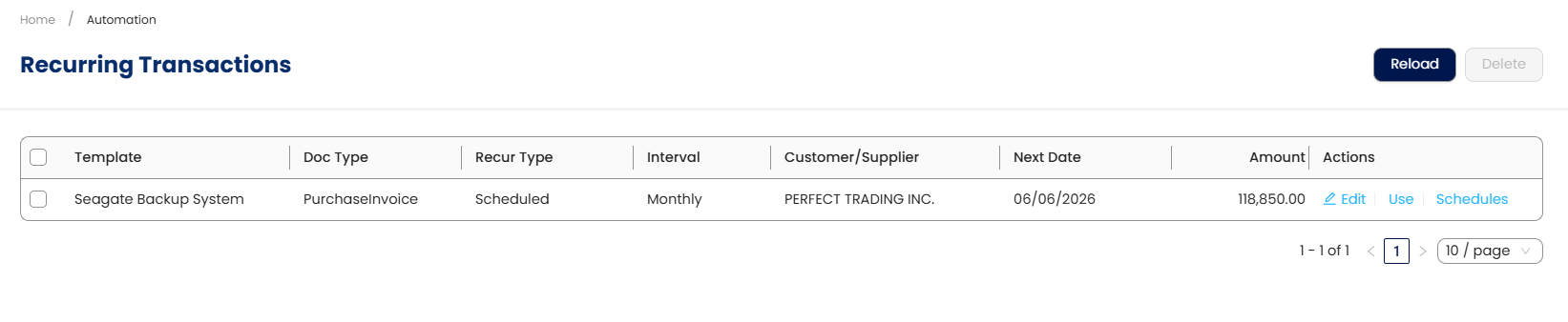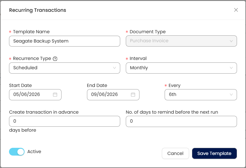 Template Name – Assign a name to the recurring transaction.