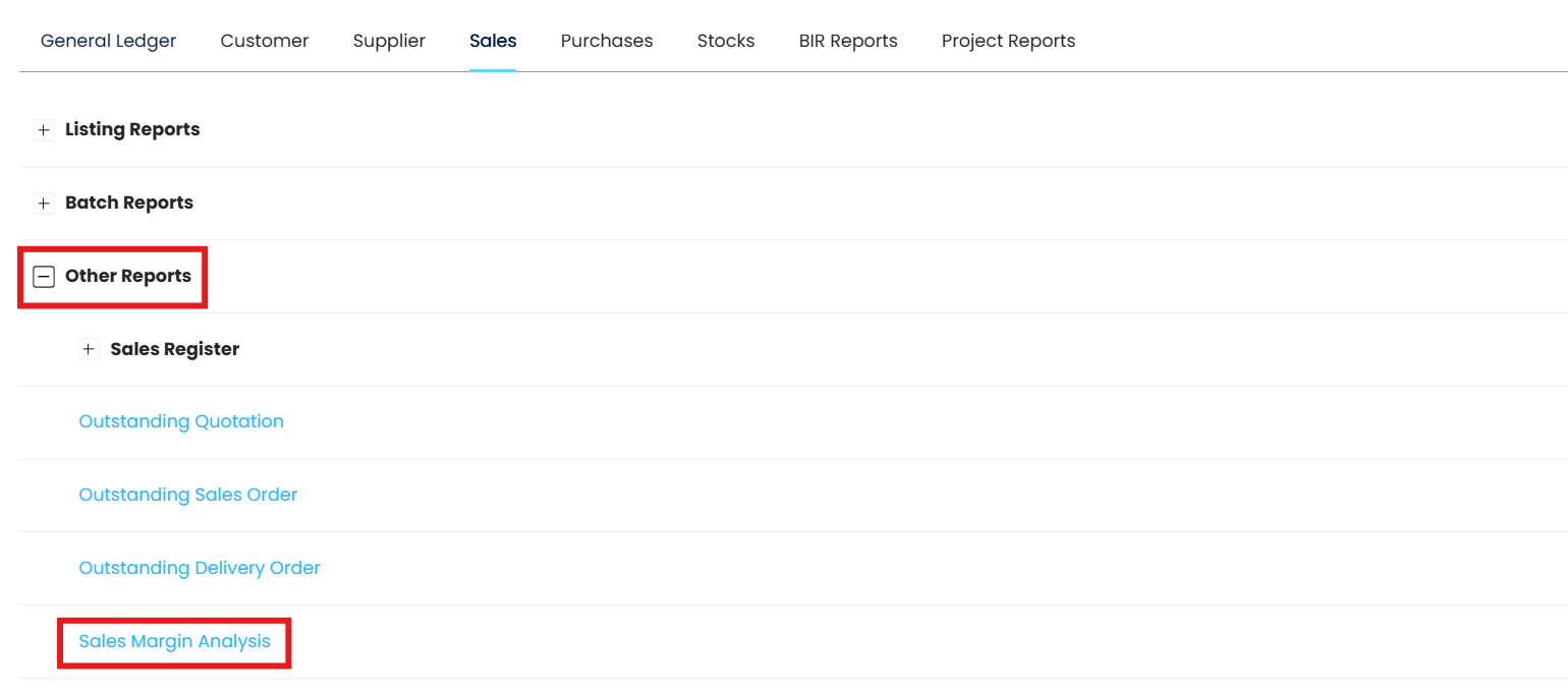 Under Other Reports, select Sales Margin Analysis.