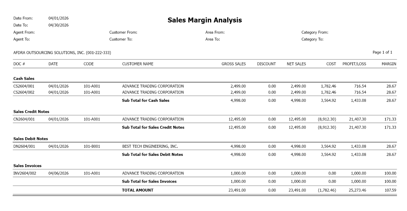 Profit/Loss Amount: The difference between net sales and costs.