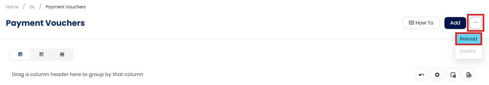 If updates have been made to the Payment/Receipt Info, hover your cursor over the three dots beside “Add” and click Reload in the same module to refresh the list.