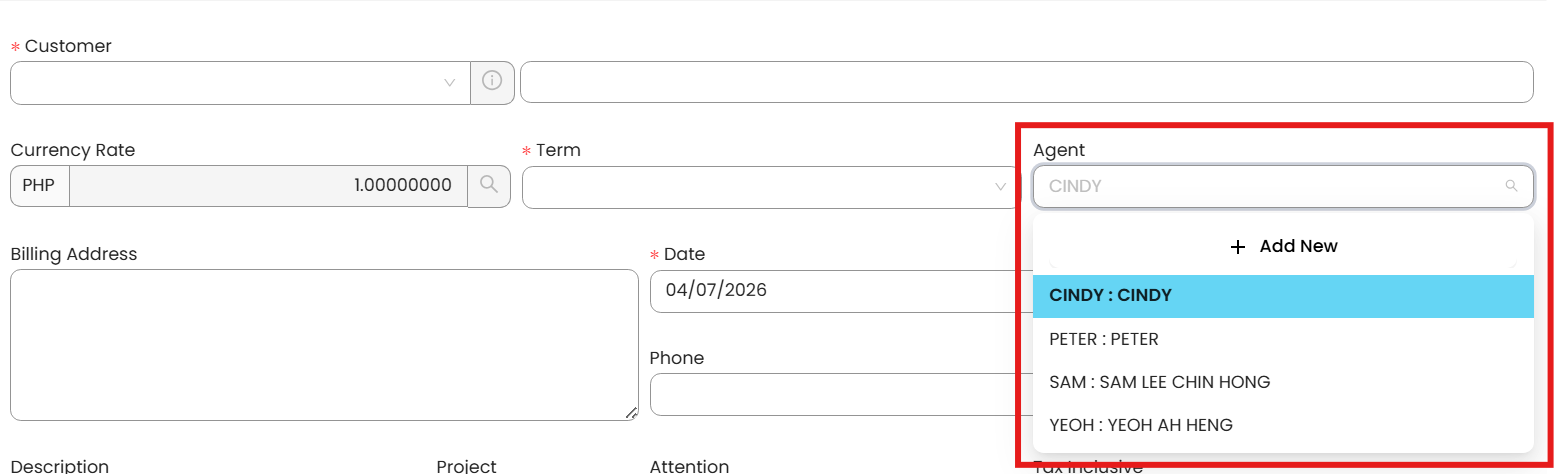 Agent / Purchaser / Location / Project: Assign default selections for specific roles or attributes that the user frequently deals with.