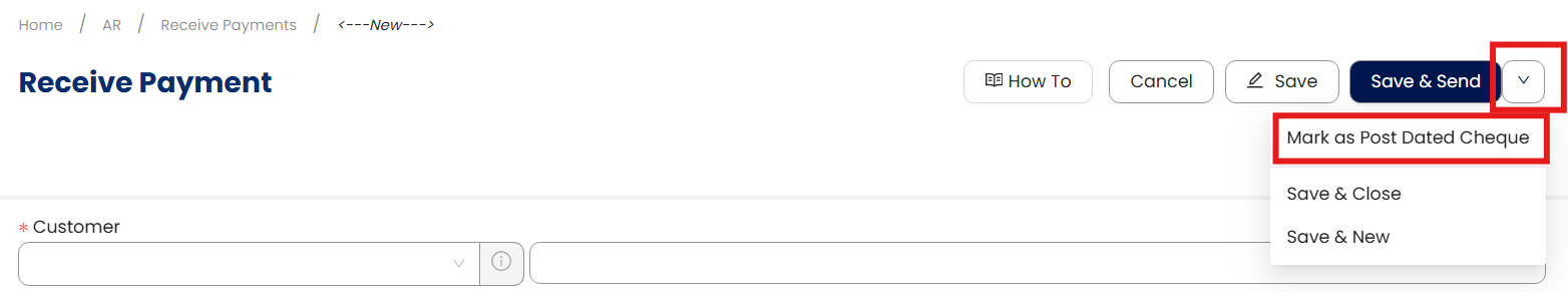 Select Mark as Post Dated Cheque.