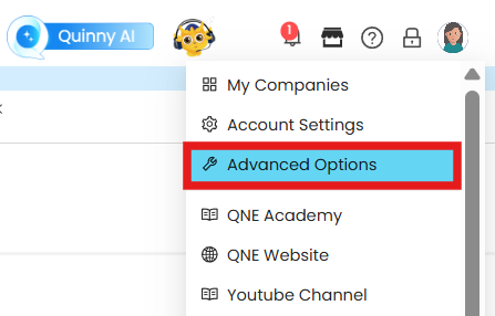 Go to Advanced Options in QNE AI Cloud Accounting.