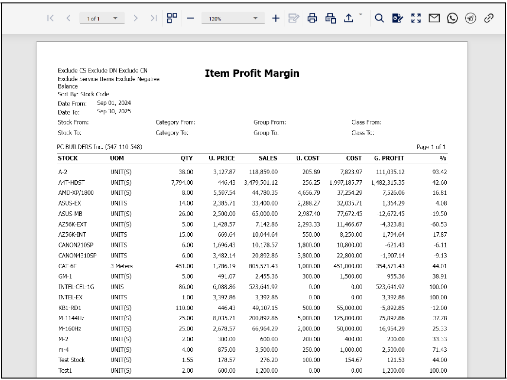 - Go to Reporting > Report Center > Stocks > Other Reports > Item Profit Margin.