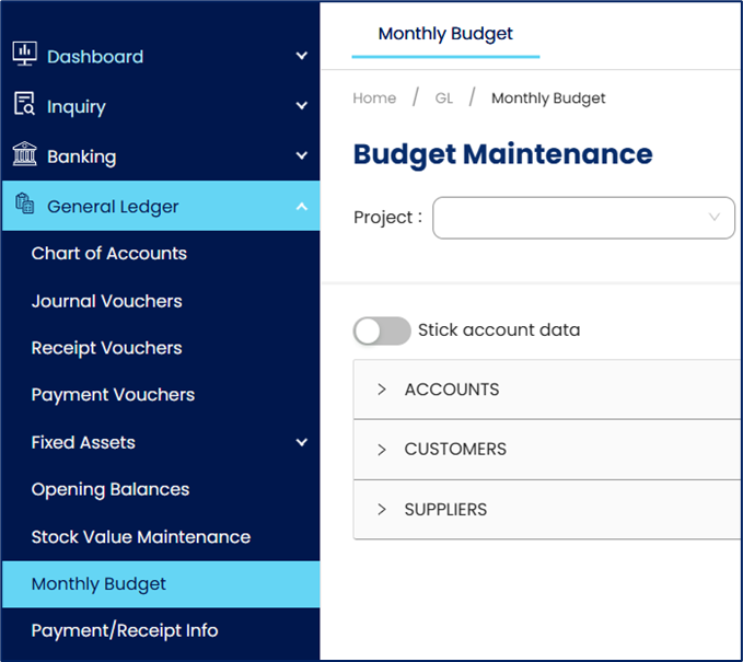 1. Navigate to General Ledger > Monthly Budget