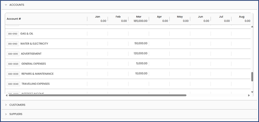 Note: Use Customer or Supplier accounts to define sales or expense targets per business partner.